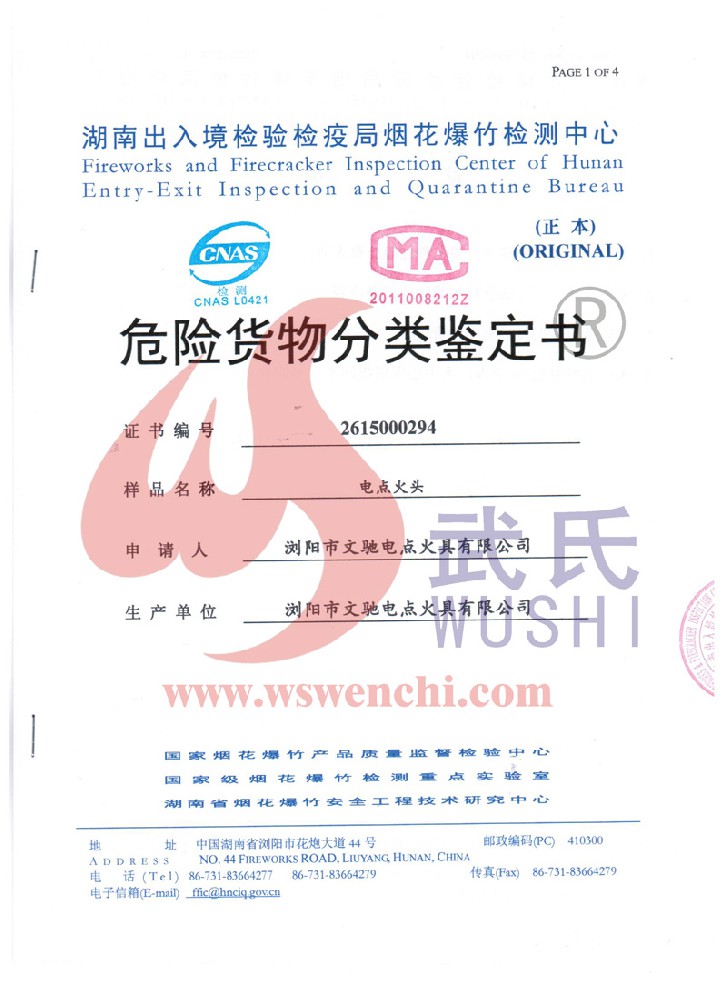 瀏陽市文馳電點火具有限公司(原培文電子點火器材廠),創建于1998年,是一家專業從事研制銷售電子點火產品的民營科技企業,是我國第1枚煙花用電點火頭生產者,是《煙花爆竹電點火頭國標》牽頭起草單位。公司位于中國“煙花之鄉”湖南省瀏陽市,地理位置優越,交通便利。 我公司研制的對象是用電能引燃火藥、做機械功等預定功能的一次性使用的元件或裝置,包括電點火頭(英文名ElectricMatch or Electric Igniter,中文俗稱“電火柴”或“電發火頭”)、電點火管和延期電點火管;我們估且在以后的產品技術欄中將我們研究的產品統稱為電點火具,將電點火器看成是用于提供和控制供給電點火元件點火的電能器材;我們研究的電點火橋路有橋絲式、無橋絲···